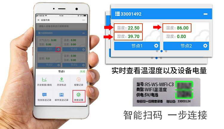 與傳統的溫濕度91视频观看网站相比,WIFI-WS-WIFI-C3具有三個顯著的特點:低功耗、采用AirKiss技術的無線組態聯網和微信平台上的遠程監控。